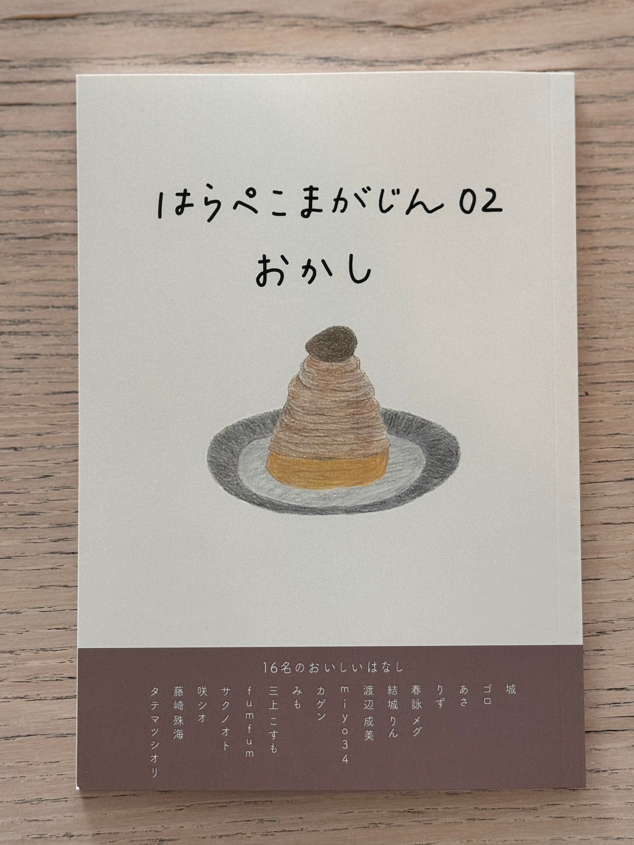 16人の食いしんぼうメンバーがそれぞれ「おかし」ついて自由に表現する冊子です。